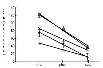Ábra alább. Hogyan változik a fenoltartalma a különböző zöldségeknek párolással és főzéssel a friss zöldségéhez képest.