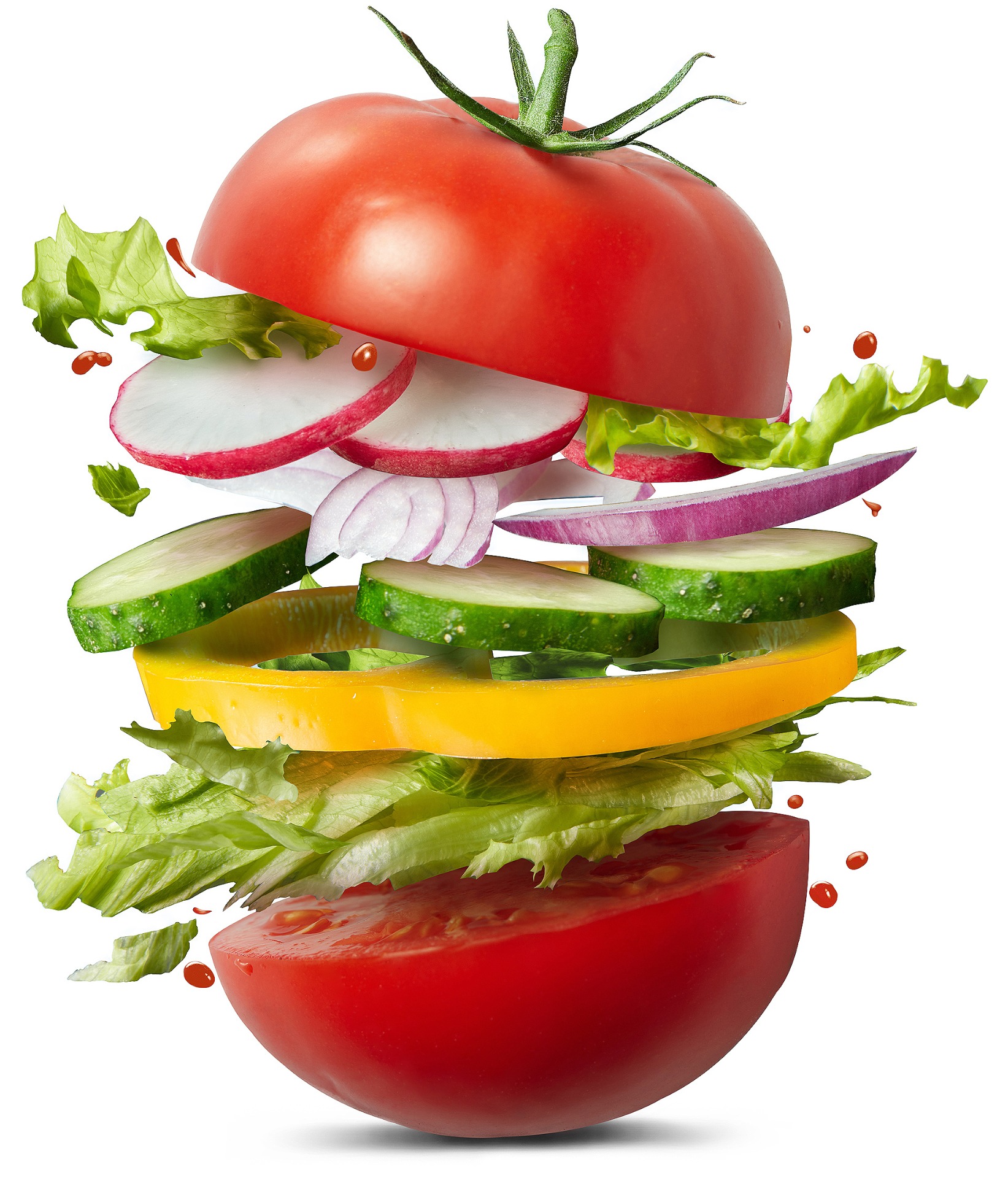 2: 50 g saláta + 80 g paradicsom + 70 g uborka
